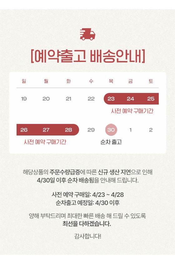 ¹è¼Û»ç : ·Ôµ¥ Åùè (1588-2121) ±âº» ¹è¼Ûºñ Æíµµ 3,500¿ø (´Ü¼ø º¯½ÉÀ¸·Î ¹Ýǰ/±³È¯ ½Ã ¿Õº¹ ¹è¼Ûºñ 7,000¿ø º°µµ) Á¦ÁÖ ¹× µµ¼ »ê°£ ¹è¼Ûºñ : Æíµµ 3,500~8,000¿ø Ãß°¡±Ý ¹ß»ý Ÿ Åùè¾÷ü ÀÌ¿ë ½Ã Ãß°¡µÇ´Â ¿îÀÓºñ´Â °í°´´Ô²²¼ ºÎ´ãÇϼžßÇϸç, ºÐ½Ç µîÀÇ »ç°í ¹ß»ý ½Ã ¾÷ü¿¡¼ µµ¿òÀ» µå¸± ¼ö ¾ø½À´Ï´Ù. |